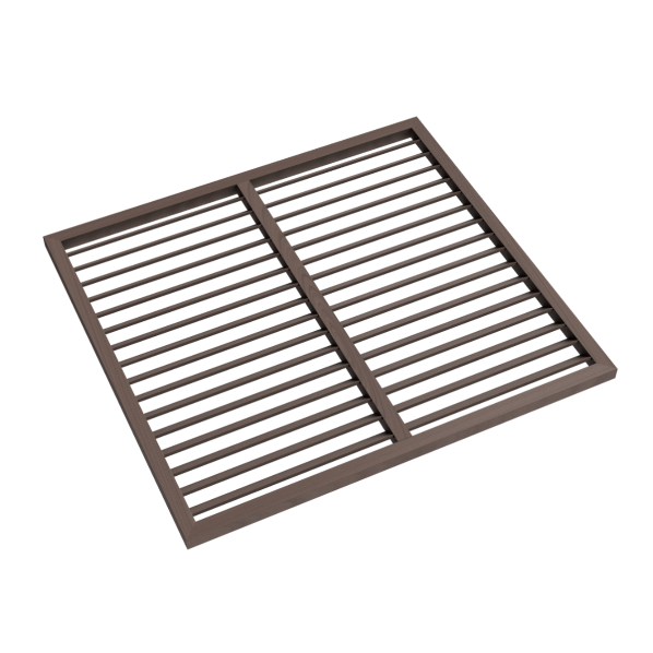 Die Evolar-Rückwand Large Walnut Grey für das Gehäuse für Klimaanlagen-Außengeräte 1100 x 1200 mm ist eine Erweiterung zum WPC Evo-Cover Walnut Grey Large. Mit dieser Erweiterung eignet sich das Evo-Cover für die frei stehende Aufstellung mit umlaufenden Lamellen.